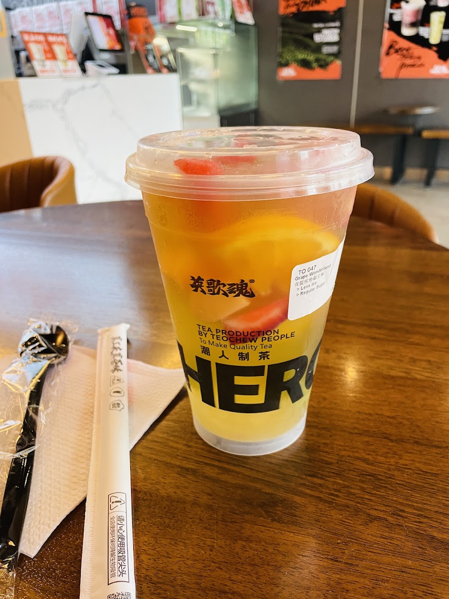 Hero Tea appeals mostly to locals who know good bubble tea isn’t just about sugar and toppings but fresh ingredients and thoughtfully brewed tea bases. Tea lovers looking for authentic flavors with a twist—like the Teochew-style {Heros Fresh Milk Tea} or the more adventurous slush drinks with notes of osmanthus or persimmon—will find plenty to explore here.