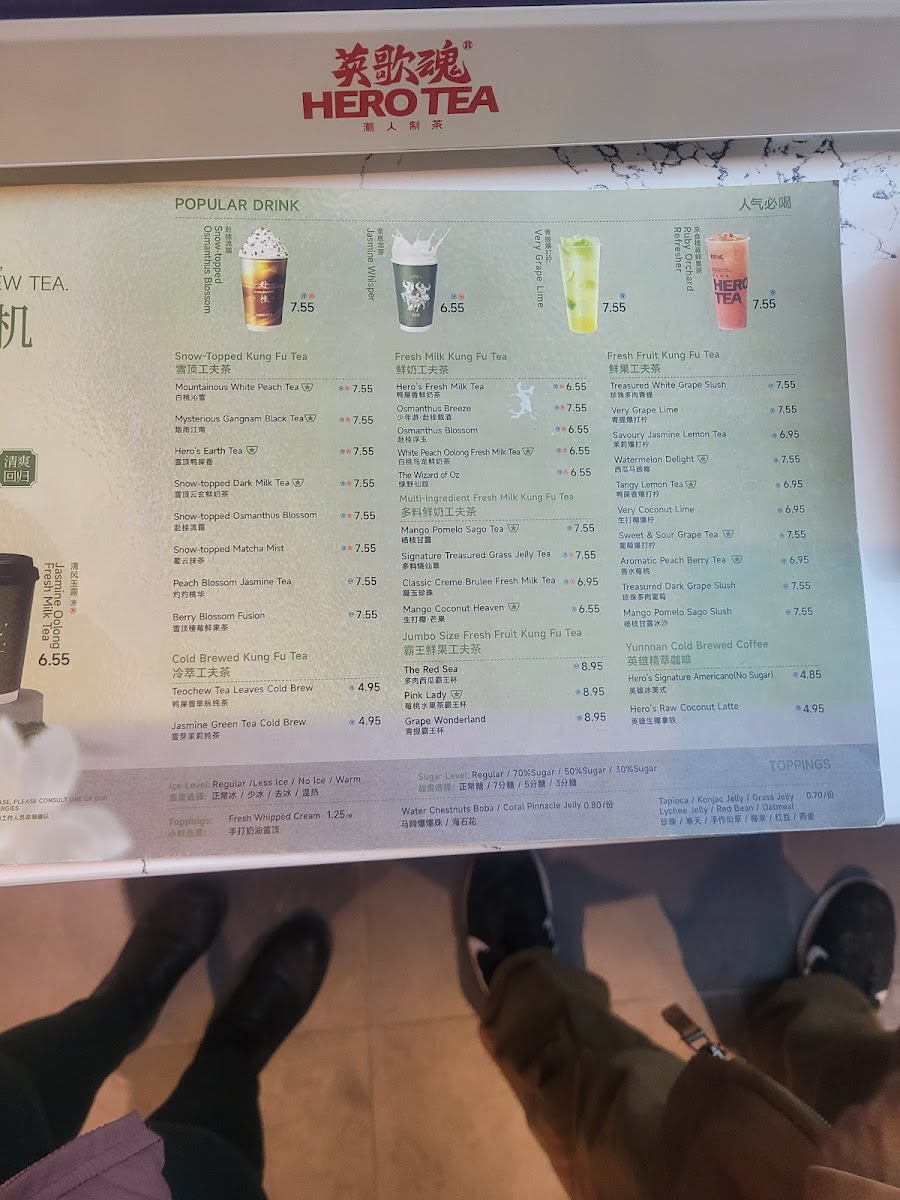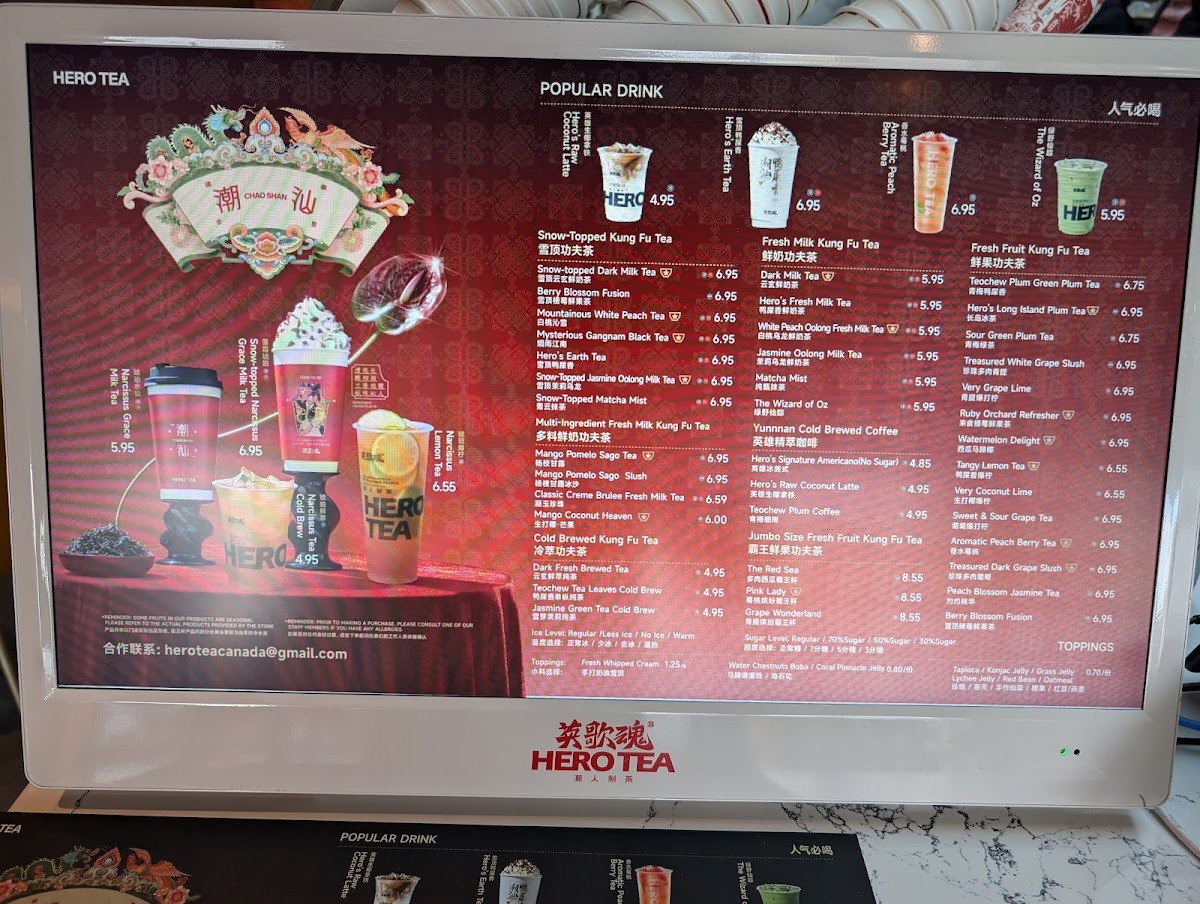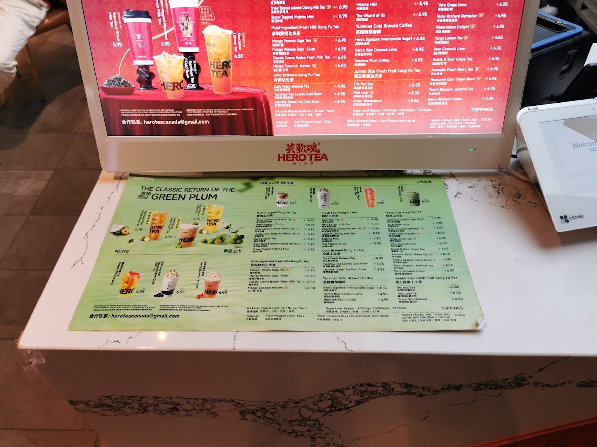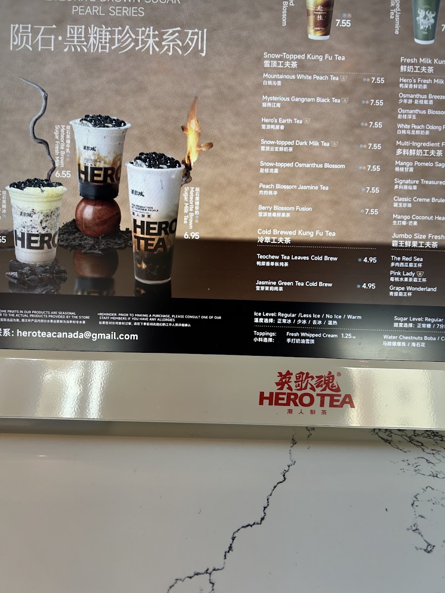 The menu at Hero Tea Mississauga centers around a variety of bubble tea beverages, featuring both traditional and innovative milk tea options. The offerings include signature fresh milk teas, such as Heros Fresh Milk Tea made with Teochew tea leaves and fresh milk, and flavored milk teas like White Peach Oolong Fresh Milk Tea. Tea selections utilize ingredients like whole leaf organic tea and white peach oolong, providing a range of natural and fragrant tea options.
